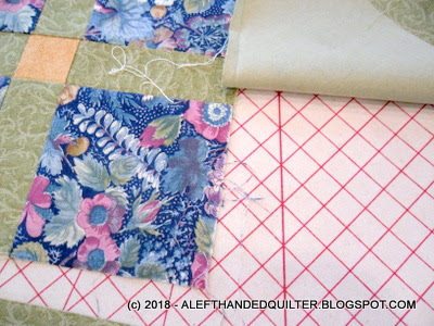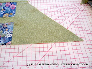 I'm measuring 4-1/4" from the Right side of the sashing strip to the Left edge of the block -
